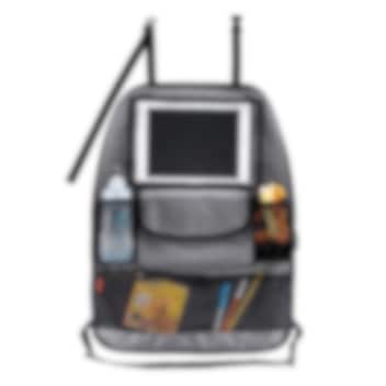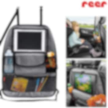 Reer TravelKid Entertain praktiline organiseerija, istmekaitse ja tahvelarvuti hoidja ühes - taskute-ja pudelihoidjatega. Asendamatu abiline pikematel autosõitudel ja puhkusel- kui söök, jook ja mänguasjad kipuvad kõikjal autos segamini vedelema. Tahvelarvuti saab paigaldada lapse istme ette turvaliselt, et see ei määrduks ega kukuks. Organiseerija kaitseb esiistet mustuse ja plekkide eest ning selle vettpidav materjal on lihtsalt puhastatav. Tahvelarvutihoidja pind on valmistatud spetsiaalsest "touch film" puutetundlikust kilest, et arvutit ei peaks lehitsemiseks hoidikust välja võtma.