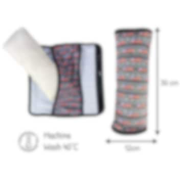 Heckbo Fire Trucks mõnus pehme, spetsiaalselt lastele disainitud turvavööpadi, mis kinnitatakse auto turvavöö külge mugava takjapaelkinnituse abil. Suur ja pehme padi toetab lapse pead ja kaela sõidu ajal nii,et pea ei jääks ebamugavalt rippuma. Padja kõrgust ja asendit saab lapse pikkusele vastavalt reguleerida. Padja võib lihtsa vaevaga kattest eemaldada ning nii patja kui katet vajadusel masinpesta 40 kraadi juures. Suurepärane sõidumugavuse parandaja lühikestel ja pikematel autosõitudel.