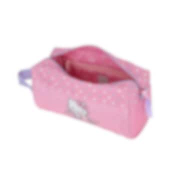 Hello Kitty Hearts & Dots armas ja praktiline tualett-tarvete ja meigikott lastele, milles on lukuga suletav tasku ja sisetasku lapse hügieenitarvete ja muude esemete paremaks ärapaigutamiseks, kaasaskandmiseks ja organiseerimiseks. Kotti on lihtne puhastada ning kasutada, nii igapäevaselt kodus kui reisil või külas ööbides.