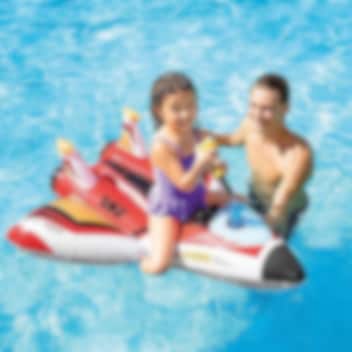 Intex Punane Lennuk Ride-On XL äge ja lõbus täispuhutav lennuk veepritsiga - lastele basseinis või merevees ujumiseks ja mängimiseks. Pealistutaval lennukil on lai põhjaosa tasakaalu hoidmiseks, tugev käepide kinnihoidmiseks ja turvaventiilid. Lõbusat mängulusti lisab rooli koha peale kinnitatud veeprits. Lennukit sobib kasutada mistahes veemängudeks rannas või kaasa võtta puhkusereisile.