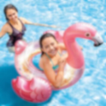 Intex Glitter Flamingo stiilne flamingo kujuline, glamuurne sädelev ujumisrõngas üle 6-aastasele lapsele. Rõngal on vees olles turvalisuse suurendamiseks turvaventiil ning seda sobib kasutada nii meres kui basseinis. Ujumisrõngas on tõhus abivahend lapse ujumaõppimisel ja lõbus veemänguasi.