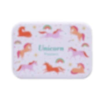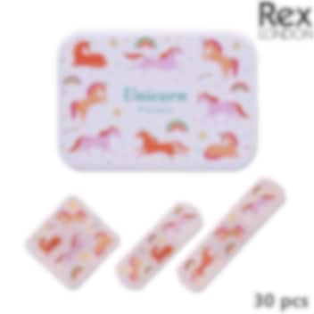Rex London Unicorns - kolmkümmend kolmes suuruses ükssarvikute pildiga lasteplaastrit praktilises metallkarbikeses. Kolmes suuruses lateksivabad plaastrid kaitsevad last kriimustuste ja väiksemate haavade puhul ning tõstavad imelisel kombel õnnetuse juhtudes ka tuju. Kasuta kodus või pista kaasa reisikotti!
