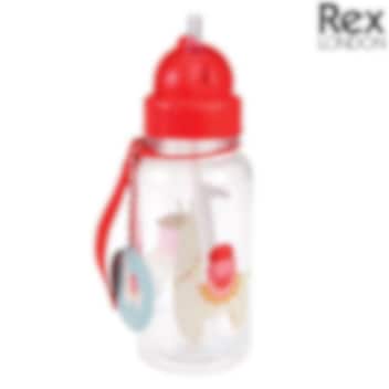 Rex London Dolly Lama kõrrega joogipudel lastele. Pudeli joogikõrs suletakse transpordi ajaks pudelikorgi sisse nii, et lapse jook ei leki pudelist. Pika integreeritud joogikõrre tõttu saab laps sellest juua ka erinevates asendites. Mugava riputusaasa abil saab pudelit kaasas kanda või näiteks seljakotile riputada. Pudel on valmistatud BPA-vabast materjalist.
