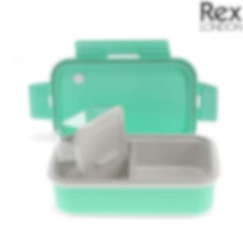 Rex London Lunch Box Aqua - kvaliteetne, kaunis ja ülipraktiline topeltseintega lõunakarp, milles on kaks eraldiseisvat lahtrit ning väike kaanega purk, näiteks salati muust toidust eraldihoidmiseks. Topeltseintega lõunakarp aitab sooja toidu hoida soojana kauem ning ühtlasi erinevad lõunakomponendid üksteisest eraldi hoida. Erladi väike sisekarbike mahub kenasti ühte lahtrisse ära ning on pealt kaanega suletav. Lõunakarbi hoiab lekkekindla silikoonist isoleeriv riba karbi äärtes ning nelja klambriga mõnusalt lihtsalt suletav kaas. Toidukarpi saab mikrolaineahjus soojendada (kuid mitte sisekarpi) ning nõudepesumasinas pesta (mitte sisekarpi). Suurepärane abivahend lõuna kaasvõtmiseks lapsega linnatuurile, lasteaeda, kooli, tööle või piknikule.