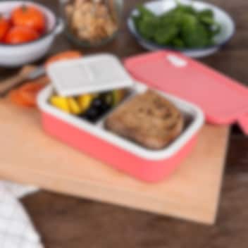 Rex London Lunch Box Rose Pink - kvaliteetne, kaunis ja ülipraktiline topeltseintega lõunakarp, milles on kaks eraldiseisvat lahtrit ning väike kaanega purk, näiteks salati muust toidust eraldihoidmiseks. Topeltseintega lõunakarp aitab sooja toidu hoida soojana kauem ning ühtlasi erinevad lõunakomponendid üksteisest eraldi hoida. Erladi väike sisekarbike mahub kenasti ühte lahtrisse ära ning on pealt kaanega suletav. Lõunakarbi hoiab lekkekindla silikoonist isoleeriv riba karbi äärtes ning nelja klambriga mõnusalt lihtsalt suletav kaas. Toidukarpi saab mikrolaineahjus soojendada (kuid mitte sisekarpi) ning nõudepesumasinas pesta (mitte sisekarpi). Suurepärane abivahend lõuna kaasvõtmiseks lapsega linnatuurile, lasteaeda, kooli, tööle või piknikule.