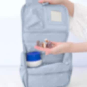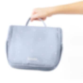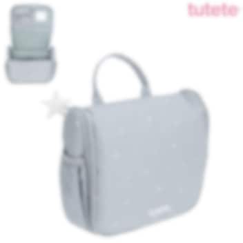 Tutete Stars Blue kaunis, kvaliteetne ja ruumikas, riputatav tualett-tarvete kott lastele. Pastelses toonis väikeste tähekestega tualetikotis on mitmeid erinevaid lukuga või takjapaelaga avatavaid taskuid hügieenitarvete ärapaigutamiseks, lukuga tasku tagaküljel ning praktiline riputuskonks koti nagisse riputamiseks. Koti seest leidub väike peegel ning koti peal on sang mugavaks kandmiseks ja tõstmiseks. Tualetikott on vooderdatud ning valmistatud lihtsalt puhastatavast vetthülgavast materjalist. Ilus ja praktiline laste tualetikott nii reisile kaasa võtta kui kodus kasutamiseks, mis on sobilik igas vanuses lastele.