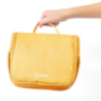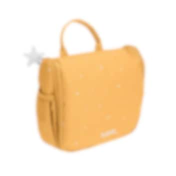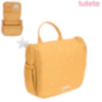 Tutete Stars Mustard kaunis, kvaliteetne ja ruumikas, riputatav tualett-tarvete kott lastele. Pastelses toonis väikeste tähekestega tualetikotis on mitmeid erinevaid lukuga või takjapaelaga avatavaid taskuid hügieenitarvete ärapaigutamiseks, lukuga tasku tagaküljel ning praktiline riputuskonks koti nagisse riputamiseks. Koti seest leidub väike peegel ning koti peal on sang mugavaks kandmiseks ja tõstmiseks. Tualetikott on vooderdatud ning valmistatud lihtsalt puhastatavast vetthülgavast materjalist. Ilus ja praktiline laste tualetikott nii reisile kaasa võtta kui kodus kasutamiseks, mis on sobilik igas vanuses lastele.