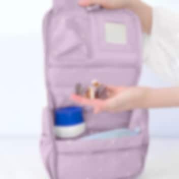 Tutete Stars Lilac kaunis, kvaliteetne ja ruumikas, riputatav tualett-tarvete kott lastele. Pastelses toonis väikeste tähekestega tualetikotis on mitmeid erinevaid lukuga või takjapaelaga avatavaid taskuid hügieenitarvete ärapaigutamiseks, lukuga tasku tagaküljel ning praktiline riputuskonks koti nagisse riputamiseks. Koti seest leidub väike peegel ning koti peal on sang mugavaks kandmiseks ja tõstmiseks. Tualetikott on vooderdatud ning valmistatud lihtsalt puhastatavast vetthülgavast materjalist. Ilus ja praktiline laste tualetikott nii reisile kaasa võtta kui kodus kasutamiseks, mis on sobilik igas vanuses lastele.