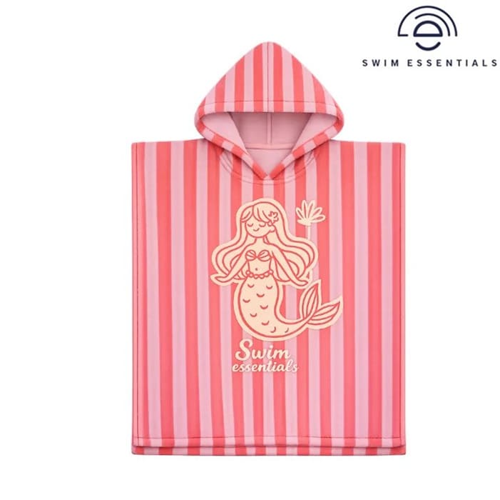Swim Essentials Pink Mermazing kerge, niiskustimav ja superpehme 100% puuvillakangast valmistatud merineitsi teemaline kapuutsiga rannarätik ja rannapontso ühes. Pontso on kasutamiseks alates beebieast kuni umbes 6. eluaastani. Materjal on mürgiste kemikaalde vaba ja kannatab vähemalt 180 pesukorda. Kasuta pontsot rannas peale ujumist või kodus peale vanni. Kokkuvolditult on pontso kerge ning ei võta kotis palju ruumi, see kuivab kiiresti ning on väikesele kandjale soojendav, kuivatav, pehme ja mugav kanda.