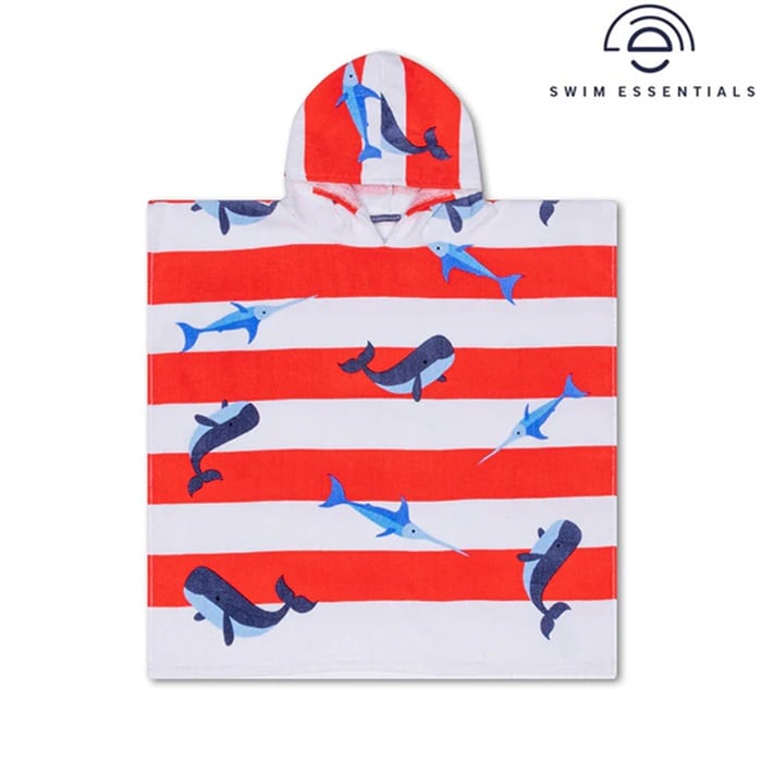 Swim Essentials Whales kerge, niiskustimav ja superpehme 100% puuvillakangast valmistatud vaalateemaline kapuutsiga rannarätik ja rannapontso ühes. Pontso on kasutamiseks alates beebieast kuni umbes 6. eluaastani. Materjal on mürgiste kemikaalde vaba ja kannatab vähemalt 180 pesukorda. Kasuta pontsot rannas peale ujumist või kodus peale vanni. Kokkuvolditult on pontso kerge ning ei võta kotis palju ruumi, see kuivab kiiresti ning on väikesele kandjale soojendav, kuivatav, pehme ja mugav kanda.