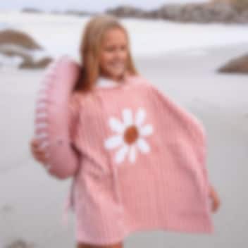 Swim Essentials Daisy Flower kerge, niiskustimav ja superpehme 100% puuvillakangast valmistatud lilleteemaline kapuutsiga rannarätik ja rannapontso ühes. Pontso on kasutamiseks alates beebieast kuni umbes 6. eluaastani. Materjal on mürgiste kemikaalde vaba ja kannatab vähemalt 180 pesukorda. Kasuta pontsot rannas peale ujumist või kodus peale vanni. Kokkuvolditult on pontso kerge ning ei võta kotis palju ruumi, see kuivab kiiresti ning on väikesele kandjale soojendav, kuivatav, pehme ja mugav kanda.