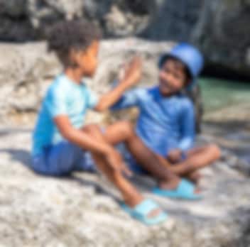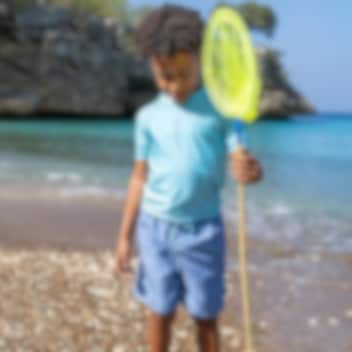Playshoes Shark New - stiilne kaheosaline, kaitsev ja kõrge UV-faktoriga Oeko-Tex kangast kvaliteetne ujumisriiete komplekt lastele. Mõnusast kergest ja hingavast kangast lühikeste varrukatega ujumissärki ja lühikesi pükse saab kasutada rannal ka eraldi. Ujumispükste sees on võrkkangast vooder ning pükste värvel veniva kummirihma-ja fikseeriva kinnituspaelaga. UV-kaitsega UPF 50+ trikood on ka märjana mugav kanda ning see kuivab soojas õhus kiiresti. Suurepärane päikesekaitse lapsele suvisel kodurannal või puhkusereisil.