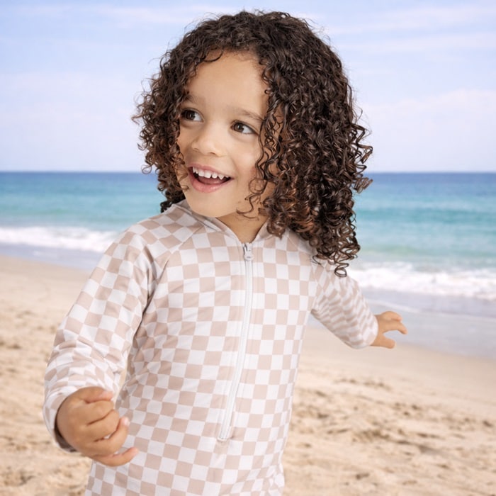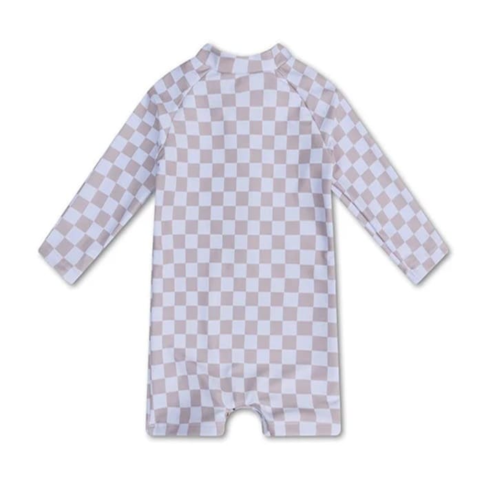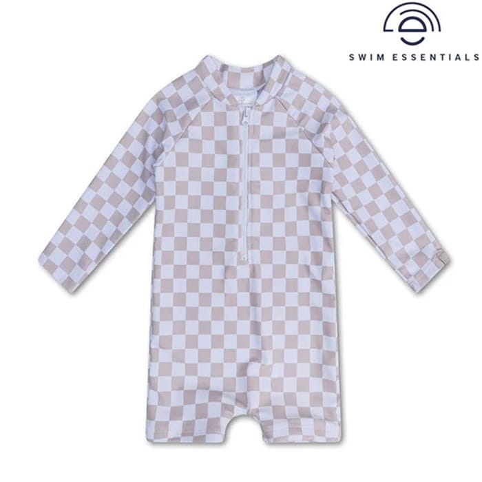 Swim Essentials Sand Check nägus ja kvaliteetne UV-kaitsega ujumistrikoo väikelastele. Pikkade varrukatega UV-trikoo kaitseb rannas olles last päikese kahjuliku UV-kiirguse eest (UPF50+) ning on valmistatud pehmest ja mõnusast, kergesti kuivavast ja venivast materjalist. Stiilne ruudumotiividega trikoo on kerge ja mõnus kanda ka märjana. Mähkmevahetuseks on kõige lihtsam avada trikoo jalgevahe trukkide abil. Suurepärane kasutada rannas, puhkusereisil või mistahes kohas päikese käes mängides ja ujudes.