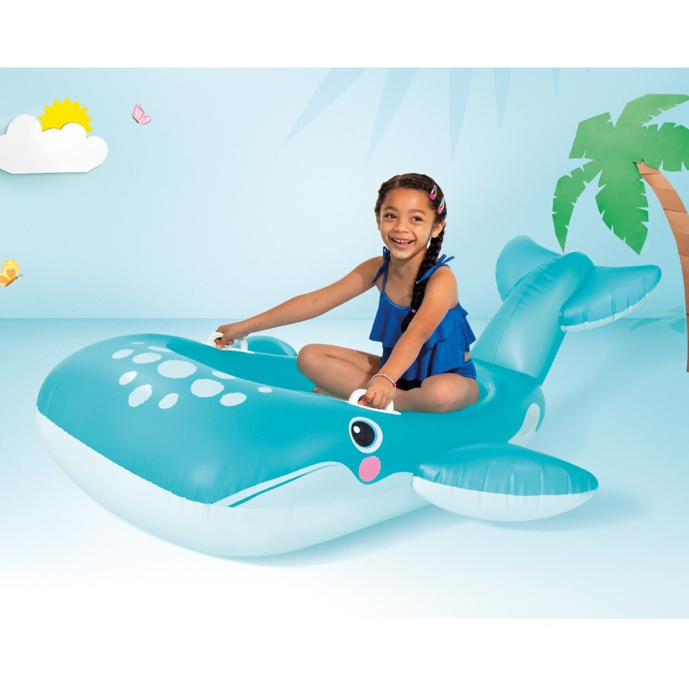 Intex Vaal Ride-On XL äge, suur ja vastupidav vaalakujuline täispuhutav ujumismadrats & ujumisloom lastele või noortele, mis sobib basseinis & meres ujumiseks ja mängimiseks. Madratsil on kaks erinevat õhukambrit ja turvaventiilid ning külgedel praktilised käepidemed kinnihoidmiseks. Avarat loomakujulist ujumismadratsit sobib kasutada veemängudeks nii rannas kui basseinis.