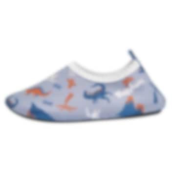 Playshoes Dino Allover kerged, mugavad ja kaitsvad ujumis- ja rannakingad lastele. Playshoes slip-on ülikerged rannakingad kaitsevad lapse jalgu päikese, põletava liiva ja teravate kivide eest rannas ning infektsioonide eest basseini ääres. Elastse neopreenpealisega ja UV-kaitsega, eriti pehmed ja mugavad ujumiskingad on lihtsad jalga panna ning ära võtta, kanna koos kaitsva laste UV- ujumistrikoo- ja rannamütsiga.