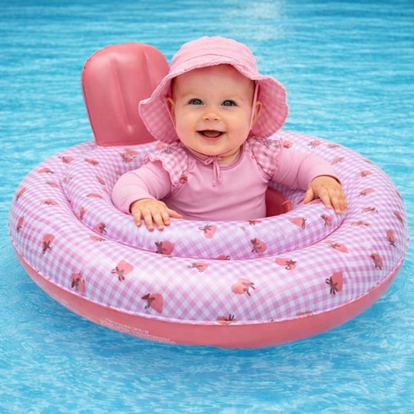 Swim Essentials Strawberry Fields kaunis ja kvaliteetne ujumisrõngas & ujumisiste, mis on spetsiaalselt disainitud 0-1 aastasele beebile, lapse veega harjutamiseks ja esimeste ujumisvõtete omandamiseks. Rõngal on mugav ja stabiilne, pehme seljatoega beebiiste, neli turvalisust suurendavat õhukambrit ning turvaventiilid. Stabiilne ja mugav viis väikelapse vees ujutamiseks ning veega harjutamiseks nii kodubasseinis, spaas kui reisil olles.
