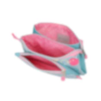Enso Little Urban Queen - kaunis pastelset värvi, vooderdatud laste ja noorte tualett-tarvete- ja meigikott, milles on kolm eraldi lukuga taskut hügieenitarvikute ja suurematel lastel ehk ka kosmeetika paremaks paigutamiseks, kaasaskandmiseks ja organiseerimiseks. Tualetikotti on lihtne niiske lapiga puhastada ning kõikjal kasutada, nii igapäevaselt kodus kui reisil või külas ööbides.
