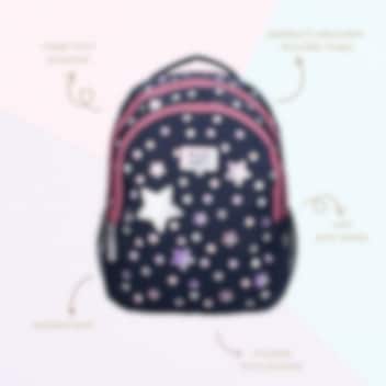 Milky Kiss Fable World - stiilse disainiga laste ja noorte ruumikat seljakotti sobib kasutada nii koolikotina kui igapäevase seljakotina, reisi- kui nädalalõpukotina. Seljakotil on suur lukuga suletav põhiosa ja kaks ruumikat, lukuga suletavat sahtlit koti peal, kuhu eraldi mahutada kas koolitarbeid või isiklikke tarbeesemeid. Seljakoti külgedel on suured võrktaskud näiteks pudelitele,salvrätikutele vms. Koti peal on mugav ja lai tõstesang käeskandmiseks ja riputamiseks. Koti seljaosa on spetsiaalselt pehmeks vooderdatud ning reguleeritavad õlarihmad on laiad, pehmed ja mugavad - seda kõike koti seljas kandmiseks. Helkurribad nii õlarihmadel kui koti külgedel suurendavad lapse nähtavust pimedal ajal liikudes. Kotti mahub peaaegu 35 liitrit erinevaid kooli- või reisitarvikuid, kott mahutab ka kuni 15 tollise sülearvuti. Suurepärane universaalse kasutusega seljakott lastele, alates umbes 5.eluaastast.