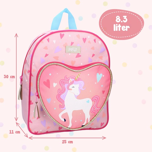 Prêt Happy Go Lucky Unicorn stiilset ükssarviku teemalist laste seljakotti sobib kasutada nii lasteaias, eelkoolis, reisil kui sõpradel külas käies. Stiilsel lasteaiakotil on avar lukuga suletav põhiosa, pisiesemete paigutamiseks on südamekujuline lukuga suletav tasku koti peal. Seljakotil on ripustusaas ning reguleeritava pikkuse- ja pehmendusega õlarihmad. Praktilist ja nägusat Pret seljakotti sobib kanda lastel vanuses alates umbes 1-2. eluaastast.