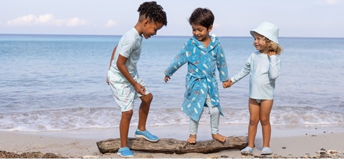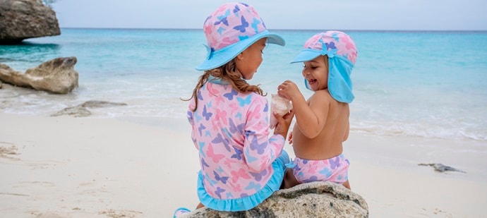 1. Riietus: Pea meeles, et lapse nahk on altim päikese kahjulikule UV-kiirgusele kui täiskasvanute oma. Varajases elus kogetud päikesepõletikud võivad hiljem põhjustada melanoomi teket. Seepärast paki lapsele kaasa pikkade varrukatega õhuke särk ja püksid, UV-kaitsega ujumistrikoo ning kõrvu, kaela ja nägu kaitsev UV-kaitsega päikesemüts.