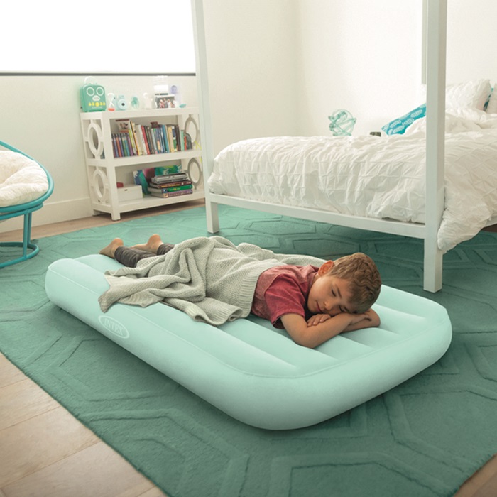 Intex Kidz Travel Bed: Intex Kidz Travel Bed täispuhutav reisivoodi lastele vanuses 3-6 eluaastat. Voodi laiad ääred takistavad last magades voodist välja veeremast. Reisivoodist eemaldatava, täispuhutava sisemadratsi äärte alla alla saab lihtsalt kinnitada lastevoodi suuruses voodilina. Komplektiga kaasas on praktiline käsipump madratsi kiireks õhuga täitmiseks ning mugav transpordikott voodi kaasaskandmiseks ja hoiustamiseks. Kompaktne Intex Kidz Travel Bed täispuhutav lastevoodi sobib ideaalselt kaasavõtmiseks nii reisile, hotelli, matkale kui sõprade-sugulaste juurde küllaminekuks.