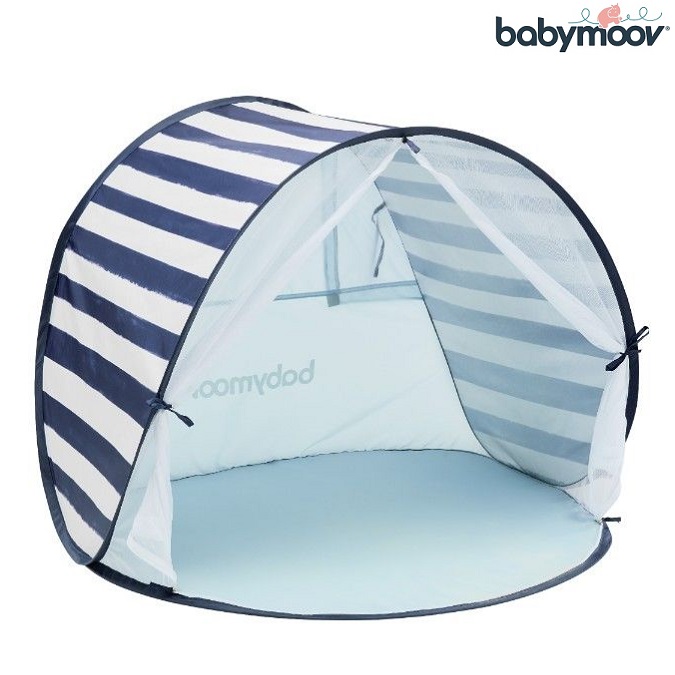 Hollandi firma Deryan UV rannatelk on valmistatud pop-up tehnoloogia põhimõttel, mis tähendab,et telgi saab püstitada ühe hetkega pärast transpordikotist välja võtmist. Telk on valmistatud päikesekaitsefaktoriga SPF 50+ kangast (riidest osadel) ning varustatud suurte võrkkangast ventilatsiooniavadega nii külgedel kui lukuga avataval ja suletaval esiküljel. Selle rannatelgi eeliseks on suletavus, igast suunast ümbritsev võrkkangas kaitseb putukate eest ning võimaldab hea õhuliikuvuse samal ajal kui kaitseb last päikese eest. Vastupidavad klaasfiibrist telgikaared on integreeritud ning komplektis on kaasas ka telgivaiad, millede abil saab rannatelgi tugevamini maa peale kinnitada. Telk kaalub vaid 1 kg, on kasutuses 120 x 70 x 80 cm ning kokkupandult 55 (diameeter) x 5 cm. Pop-up rannatelgi õiget kokkupanemist peale kasutust on mõttekas enne kasutuselevõttu kodus video abil veidi harjutada.