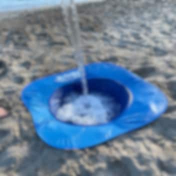 Swimpy Splash Pool Blue - innovatiivne kaasaskantav pop-up beebibassein, mis kaevatakse rannas olles liiva sisse ja täidetakse seejärel basseini keskosa veega. Kokkupandult võtab bassein väga vähe ruumi (koti diameeter on vaid 32 cm) ning on seetõttu ideaalne abivahend puhkusereisil või suvel rannas olles. Hetkega kokkupandav bassein mahub kõikjale kaasa, on ülikerge ning lihtsasti kasutatav kõikjal, kus leidub liiva või pehmet kruusa.