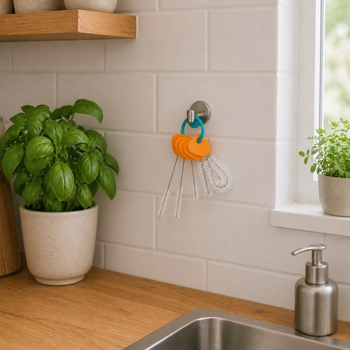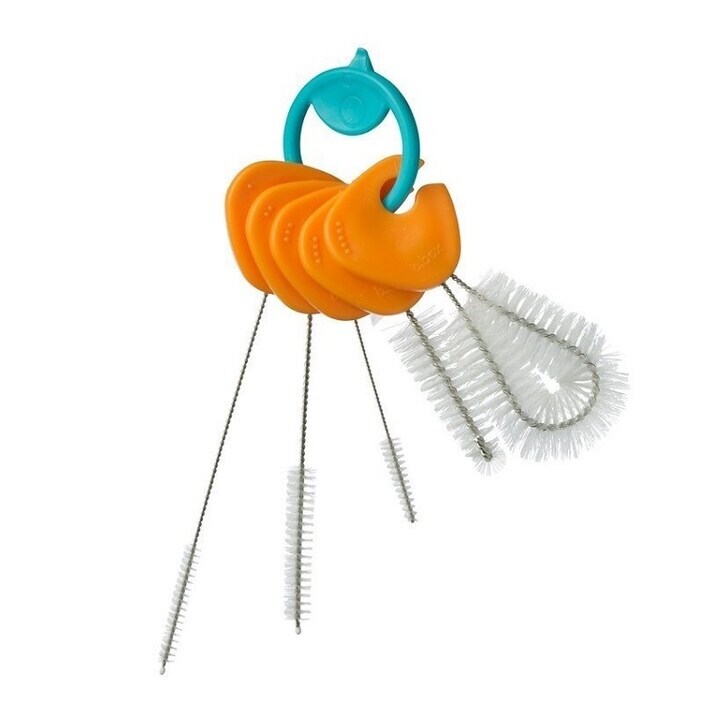 B.box praktiline beebipudelite, joogikõrte, jooginokkade ja laste joogipudelite puhastamise komplekt koosneb viiest erinevast käepidemega harjakesest, mis on rõnga külge kinnitatud ning hõlpasti sealt lahtivõetavad. Harjakesed sobivad hästi ka raskemini puhastatavate kõrte ja jooginokkade puhastamiseks. Käepärane väike komplekt sobib kasutada nii kodus kui lapsega kodust väljas liikudes. Toode on ftalaatide- , PVC- ja BPA- vabadest materjalidest.